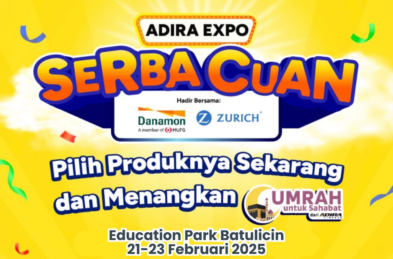 Jangan lewatkan kesempatan ini! Ayo datang dan meriahkan acara ADIRA Expo 2025 pada hari Jumat hingga Minggu, 21 hingga 23 Februari 2025.