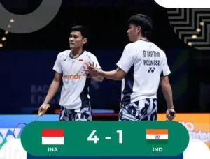 Smartwarta – Ganda putra Indonesia Muhammad Shohibul Fikri/Daniel Marthin sukses menjadi penentu kemenangan tim Merah Putih atas India dalam laga