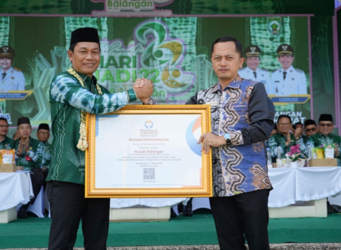 Smartwarta – Bupati Balangan, H Abdul Hadi, menerima piagam penghargaan dari Ombudsman Republik Indonesia sebagai bentuk apresiasi atas komitmennya dalam mencegah praktik maladministrasi di tingkat desa. Penghargaan tersebut diserahkan langsung oleh Kepala Perwakilan Ombudsman RI Provinsi Kalimantan Selatan, Hadi Rahman, pada acara puncak peringatan Hari Jadi ke-22 Kabupaten Balangan, Sabtu (13/4/2025), yang digelar di halaman Kantor Bupati Balangan.
